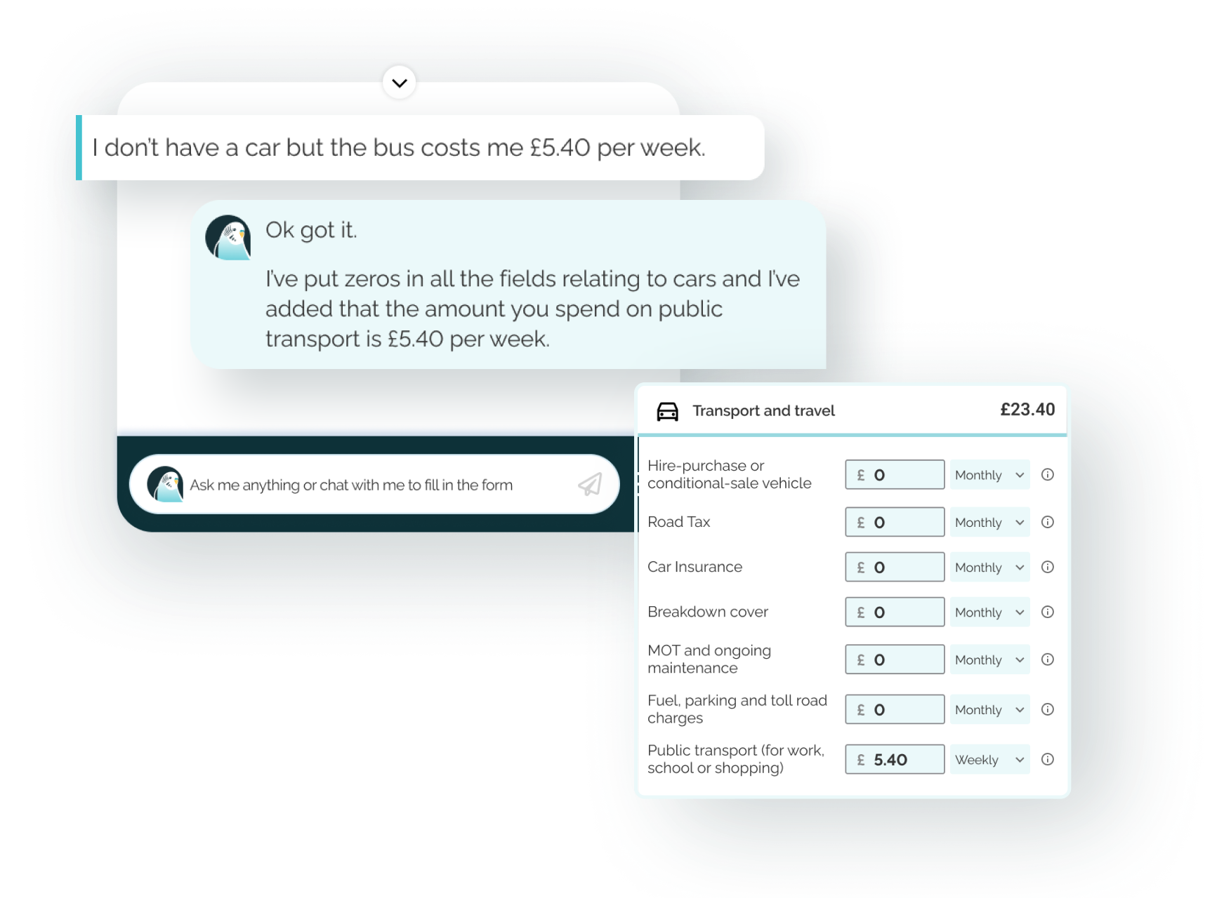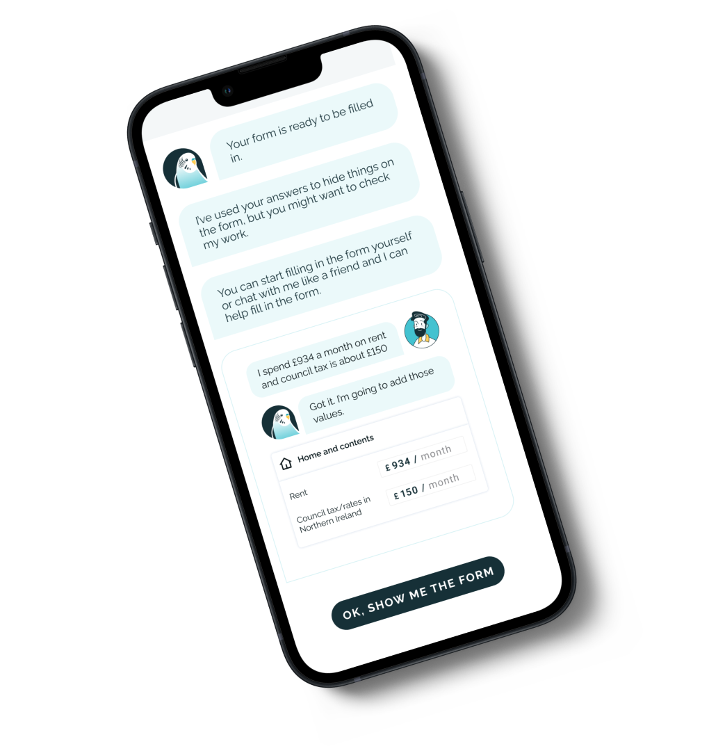 You don’t need to know where to put things, just tell Budgie about your income and expenditure and Budgie will fill the form in for you and do all the tricky maths.