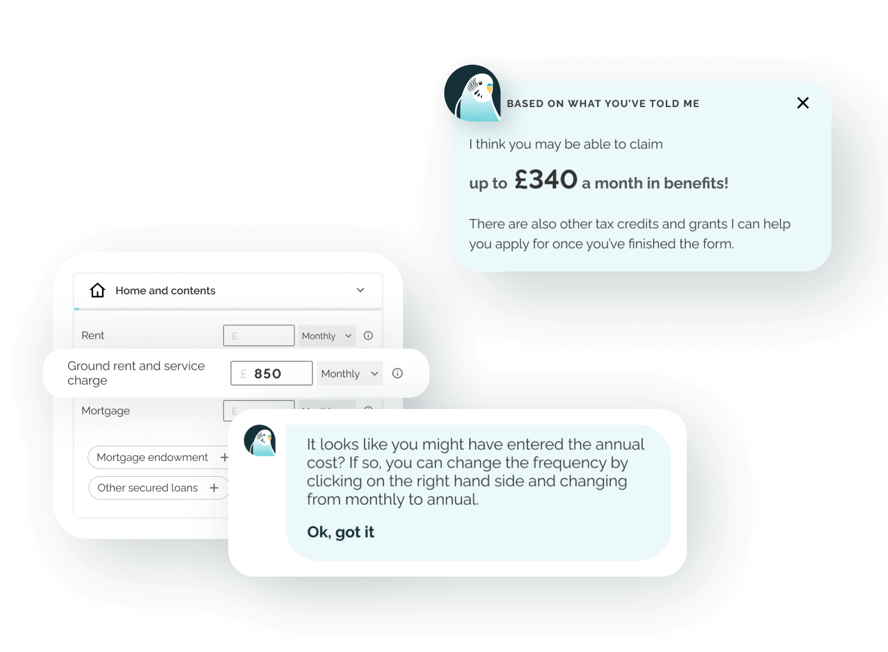 Budgie will gently prompt and guide you if things look a bit odd to help you work through the form.