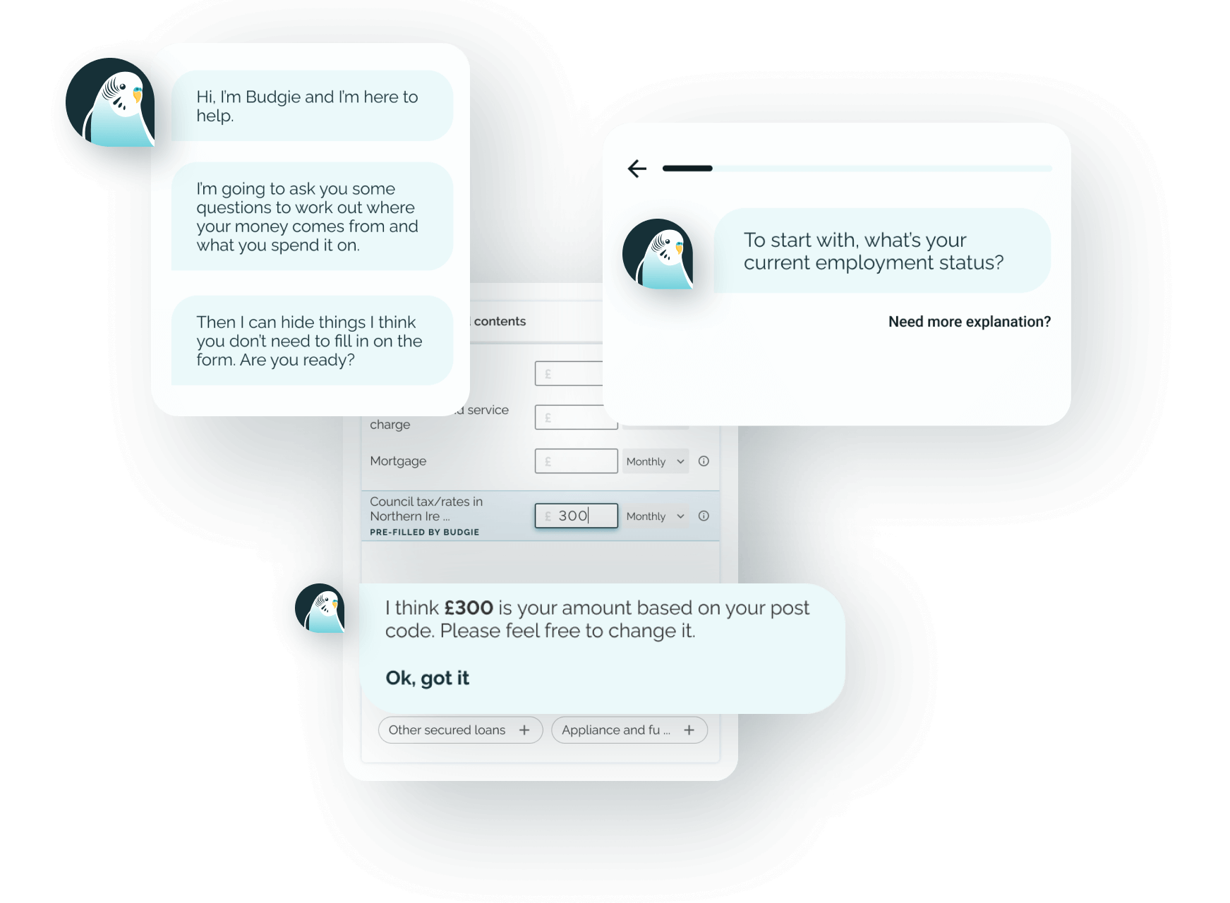 Answer a few simple questions such as if you work and if you have children. Budgie will use this information to create a form tailored just for you.